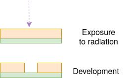 Resists are radiation-sensitive materials that can be coated onto substrates and locally modified to yield desired patterns. Based on their response to exposure, they are broadly classified as positive or negative resists. Positive resists show an increased dissolution rate in the exposed regions when developed, while negative resists show a decreased dissolution rate; the exposed regions become insoluble and are retained after development [9].
